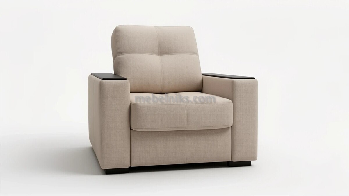 Изысканное кресло с деревянными подлокотниками и регулируемой подушкой для спины, обеспечивающей идеальный уклон. В основе — независимый пружинный блок и высокоэластичный пенополиуретан для максимального удобства. Прочный каркас из натурального дерева, берёзовой фанеры и ЛДСП гарантирует долговечность. Обивка на выбор — от велюра до кожи.